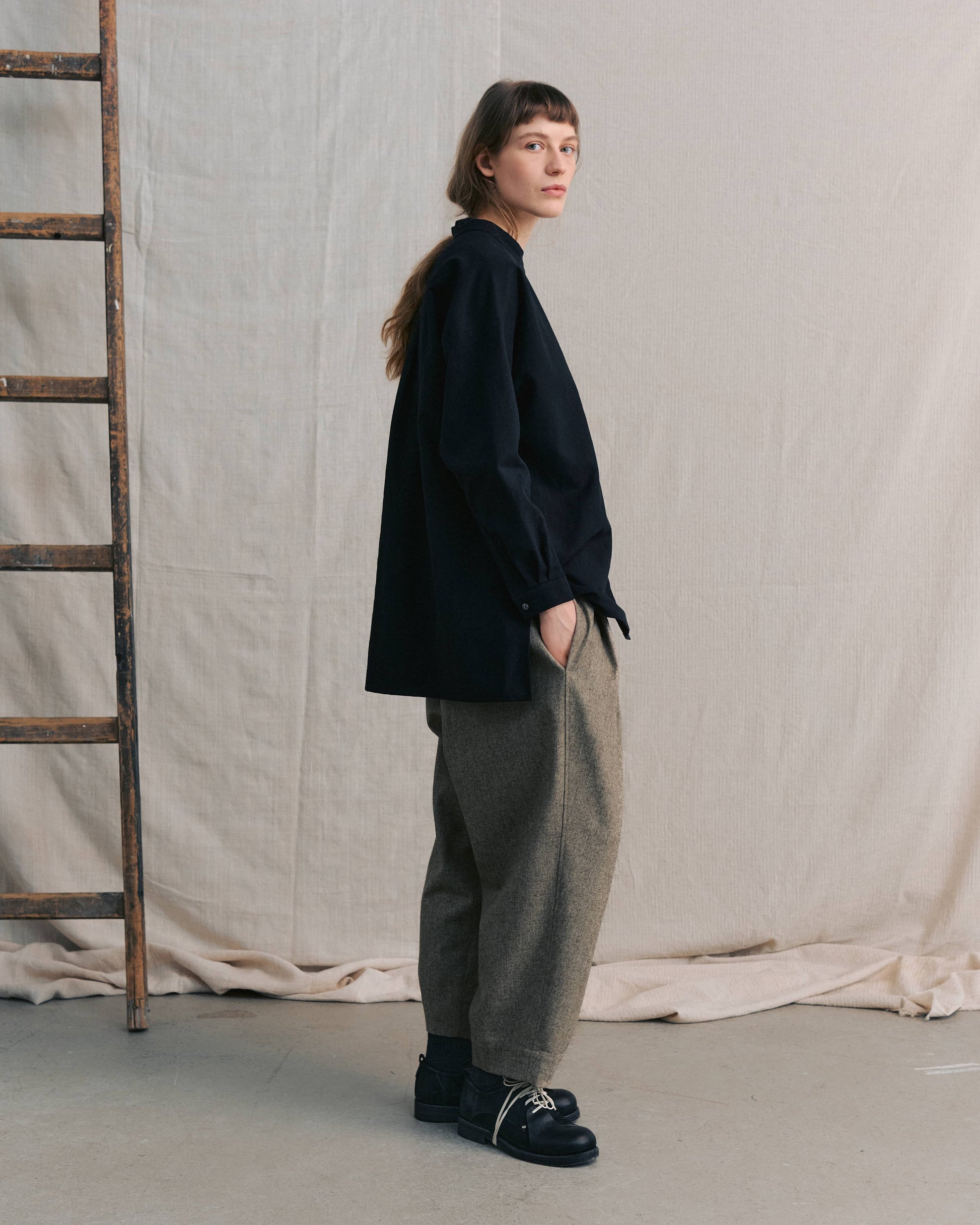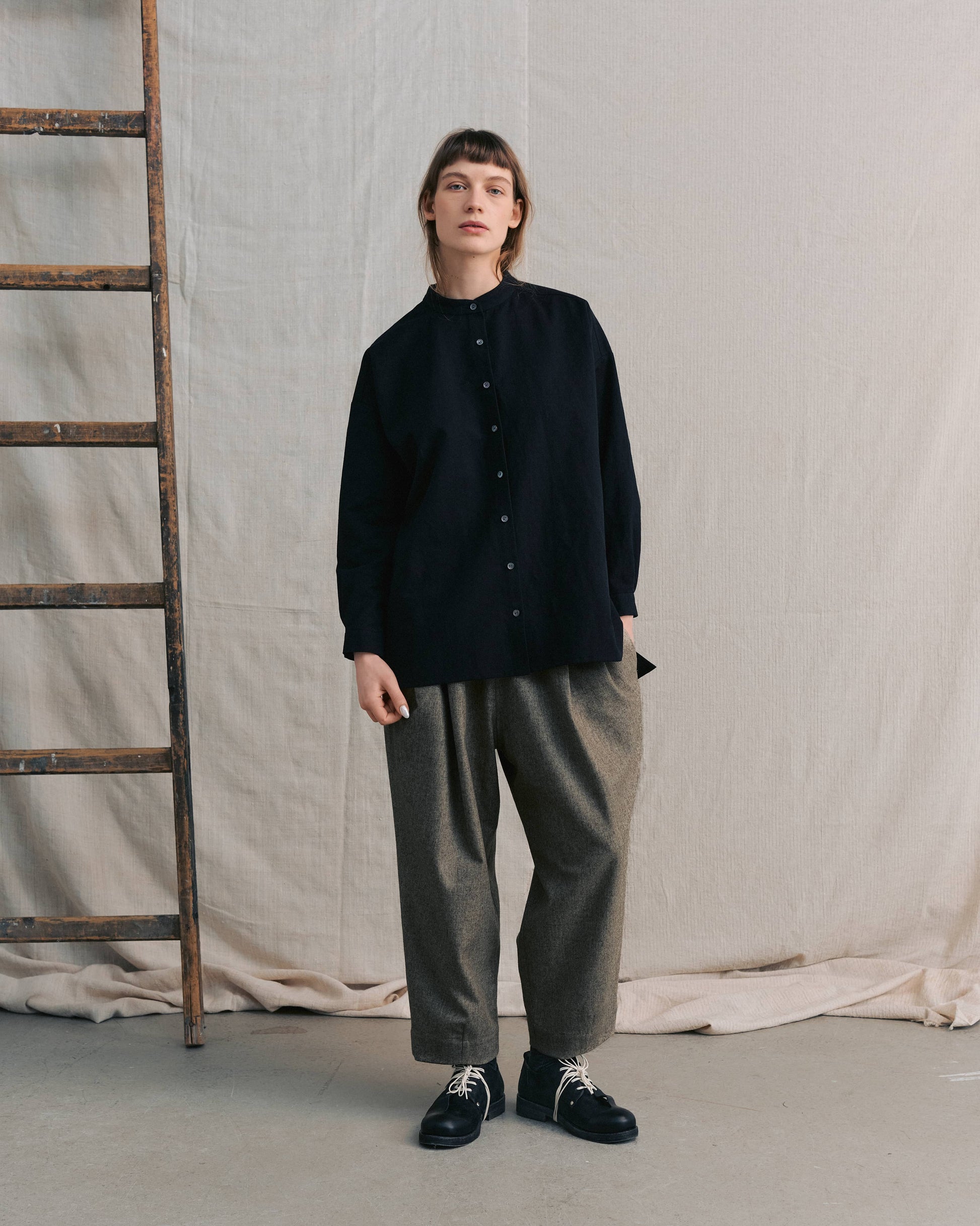 ムク ブラック バンドカラーシャツ