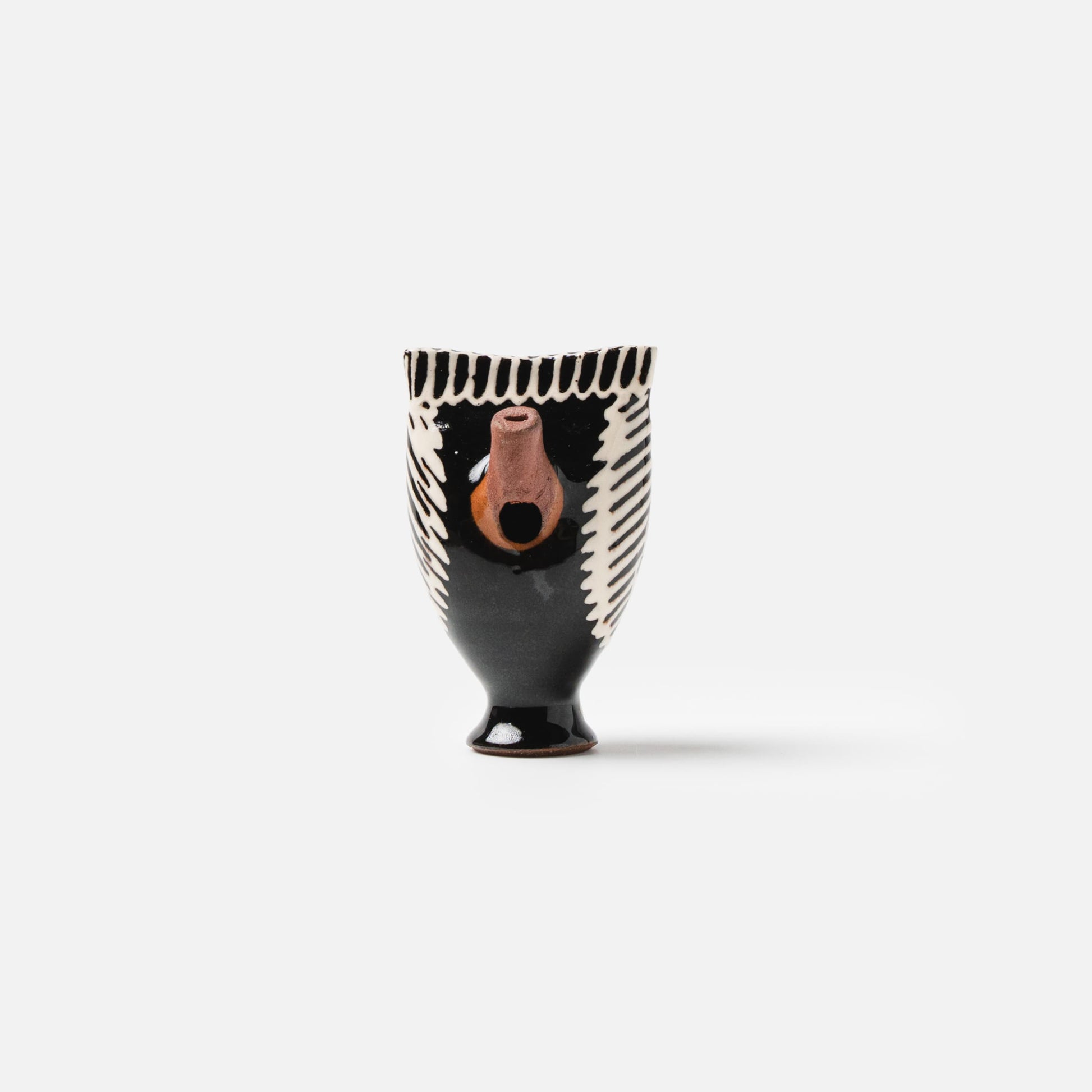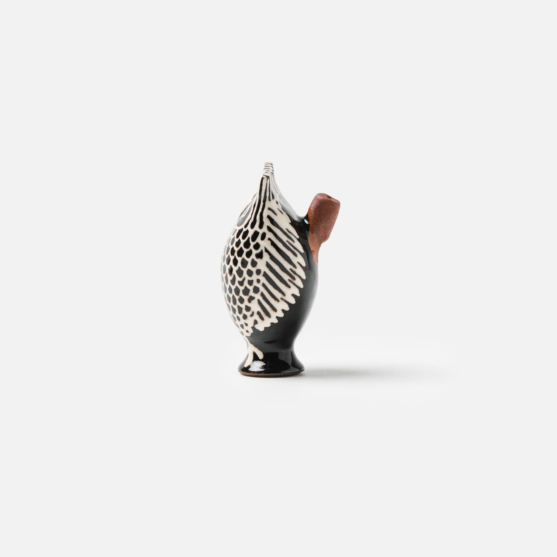首都ヴィリニュスで陶芸の教育と作陶を手がけるヴィガンタスさん。伝統的な陶芸の技術を広めるために工房兼ギャラリー「クラフトギルド」の創設メンバーとして活動しています。屈強な体つきに優しい表情の彼がつくる陶器は、精密さと大らかさを合わせ持った不思議な魅力があります。リトアニアで16世紀頃から玩具として作られてきた鳥笛も、ヴィガンタスさんの手にかかると水玉模様に。とぼけた表情の小さな存在は、暮らしの中にほっとする場所をつくってくれます。